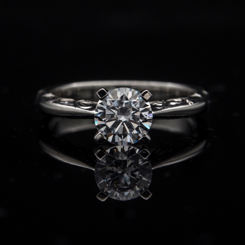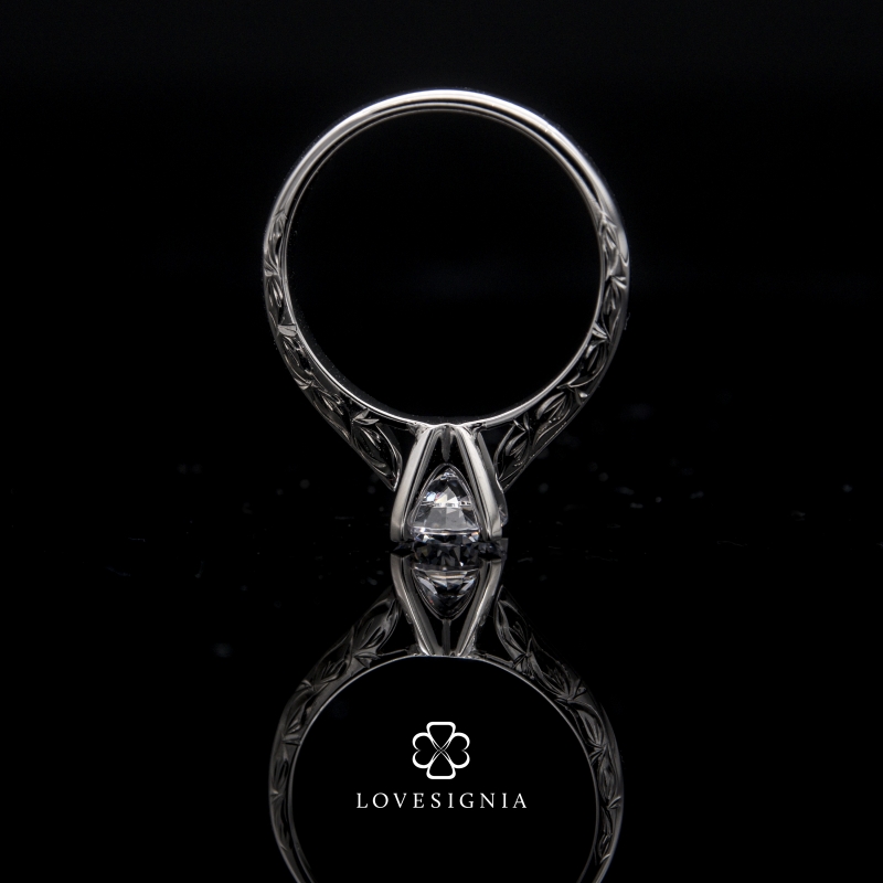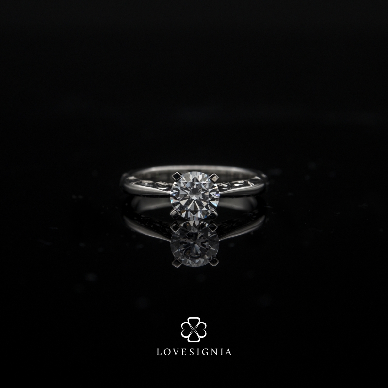 Classic 4 prongs | Hand-craved Details on side profile of band.