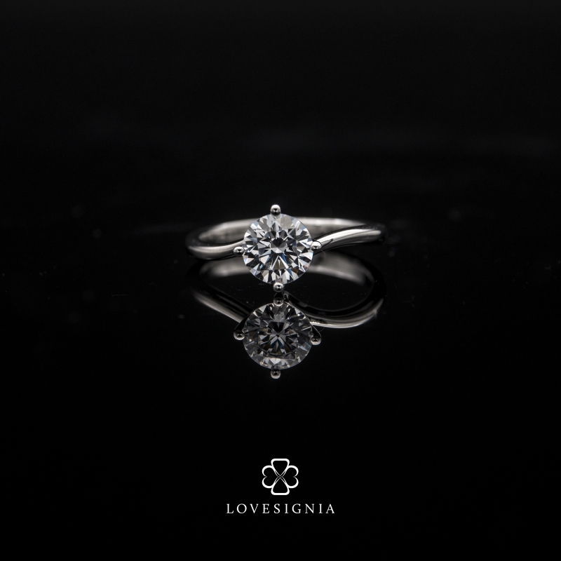 Classic 4 prongs | Asymmetrical Curved Band | High Polish Shiny Finish