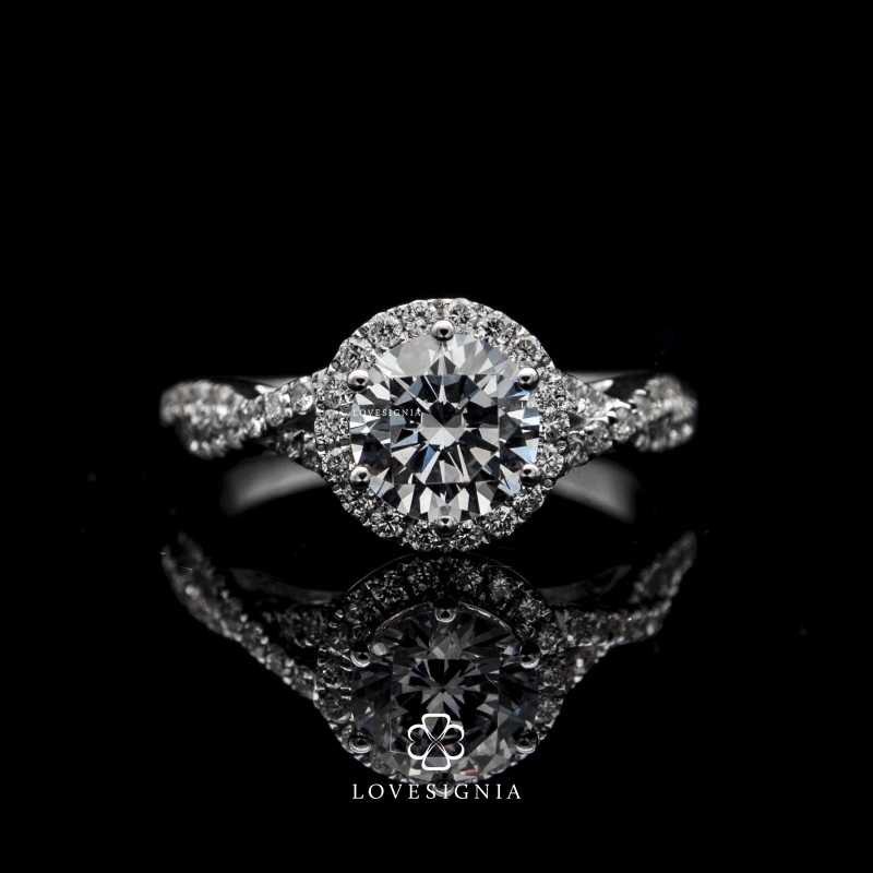 Solitaire Ring Setting 7 | Halo with Entwine Pave Diamond Band